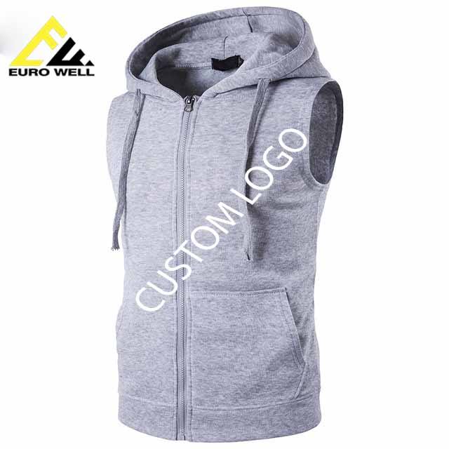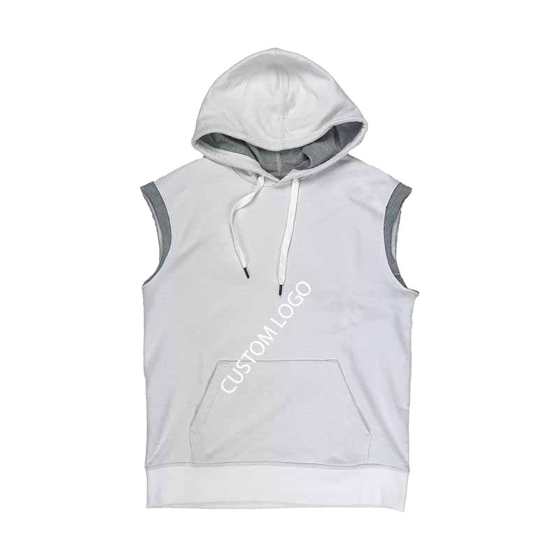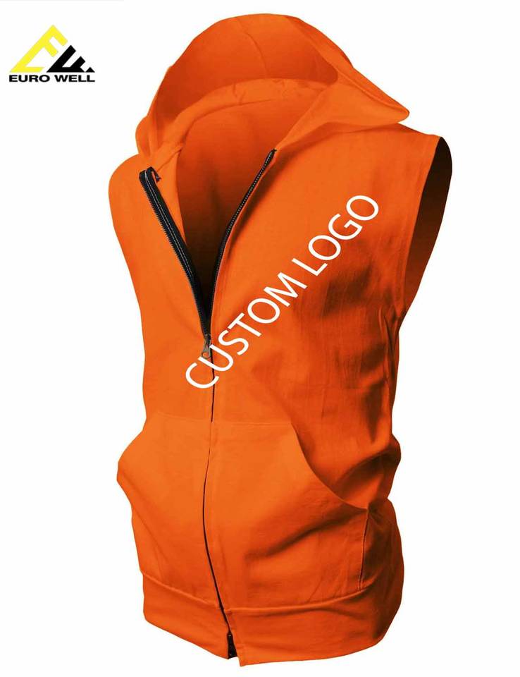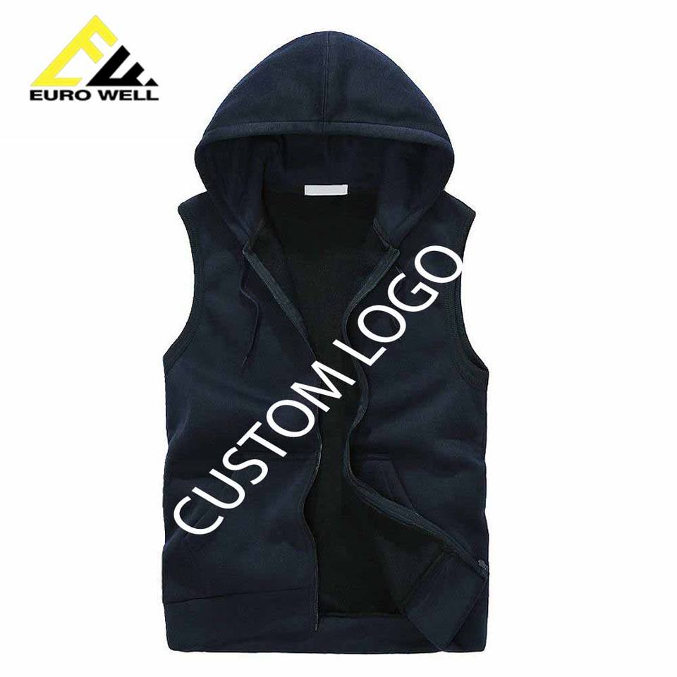 Haut de sport sans manches personnalisé pour homme, 340 grammes, 100% coton tricoté, doublé, grande taille, avec capuche et logo imprimé en relief, design uni et élégant