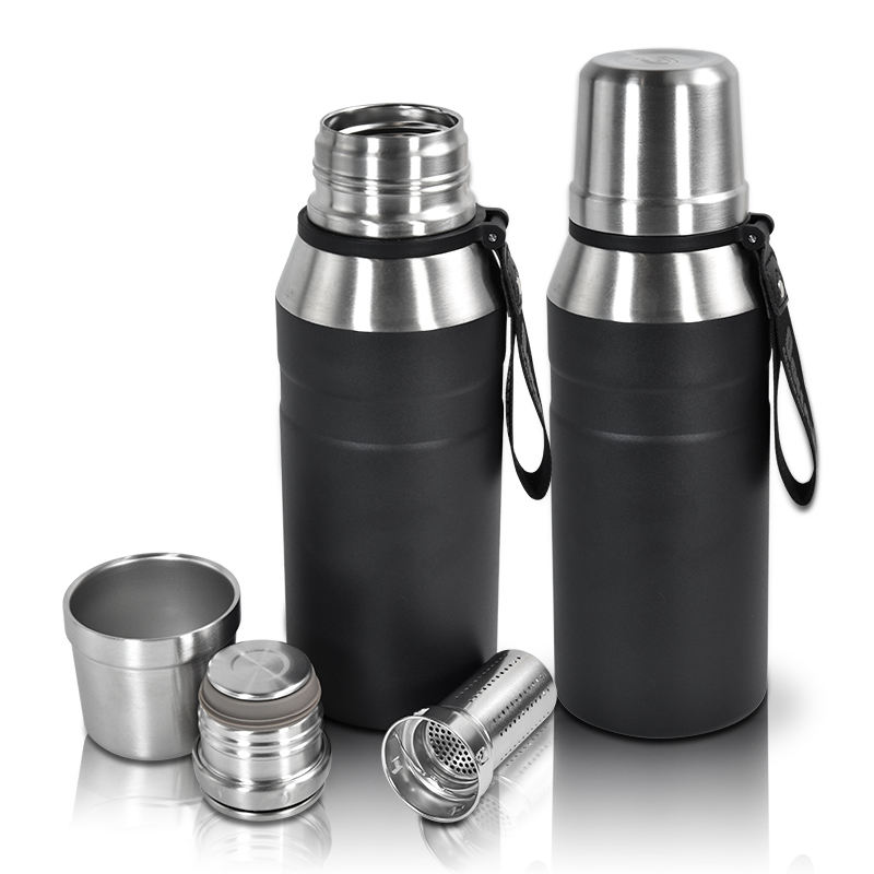 Flacons à eau thermo isolés sous vide en acier inoxydable de 34oz personnalisés avec infuseur et couvercle à rabat en acier thermique