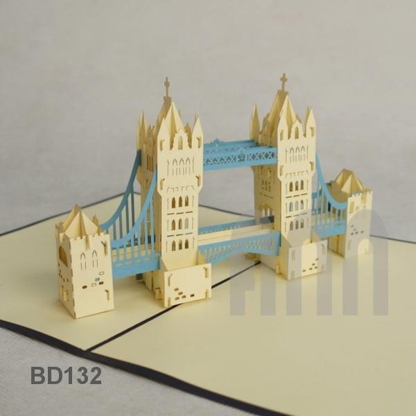 Carte de vœux pop-up 3D personnalisée avec conception de pont de tour Sculpture en papier creux Impression offset pour anniversaire Souvenirs du Nouvel An