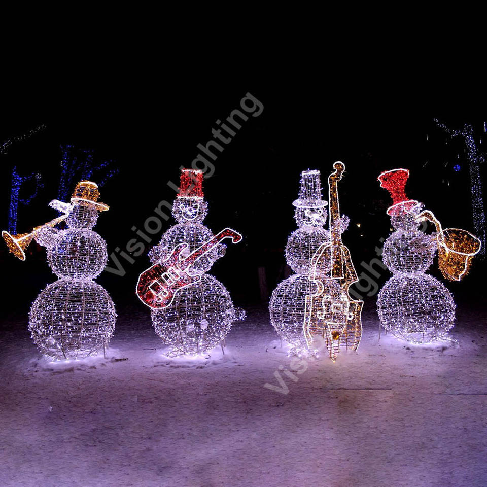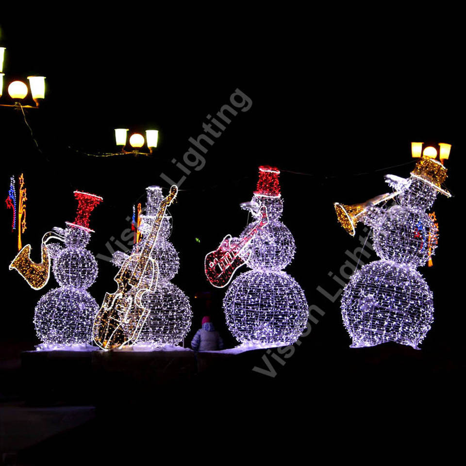 Décoration de Noël de rue 3D personnalisée Utilisation en extérieur Sculpture LED Motif lumineux Bonhomme de neige Design