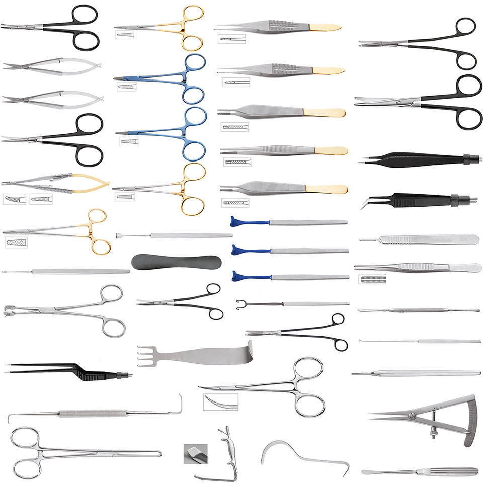 Ensemble de base personnalisé de 43 pièces, instruments chirurgicaux manuels en acier inoxydable, kit de chirurgie plastique, lifting du visage Vinyard, classe II haute