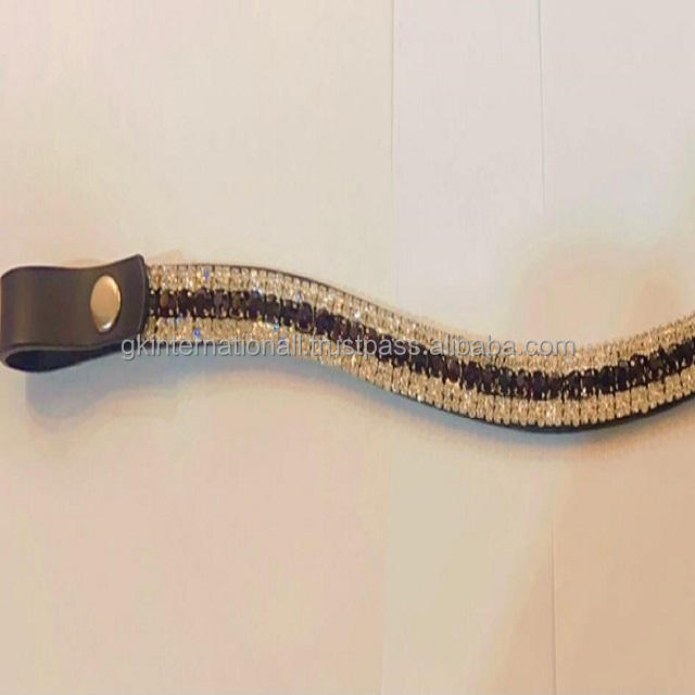 Chaîne en métal personnalisée à 5 rangées de cristaux violets et clairs méga bling fait à la main en forme de vague noire en cuir bande de front de cheval en plein épi