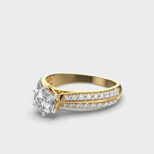 Bague de fiançailles ronde en diamant taillé en brillant or jaune Double rangée de pierres latérales pavées bijoux de mariage de mariée pour femmes