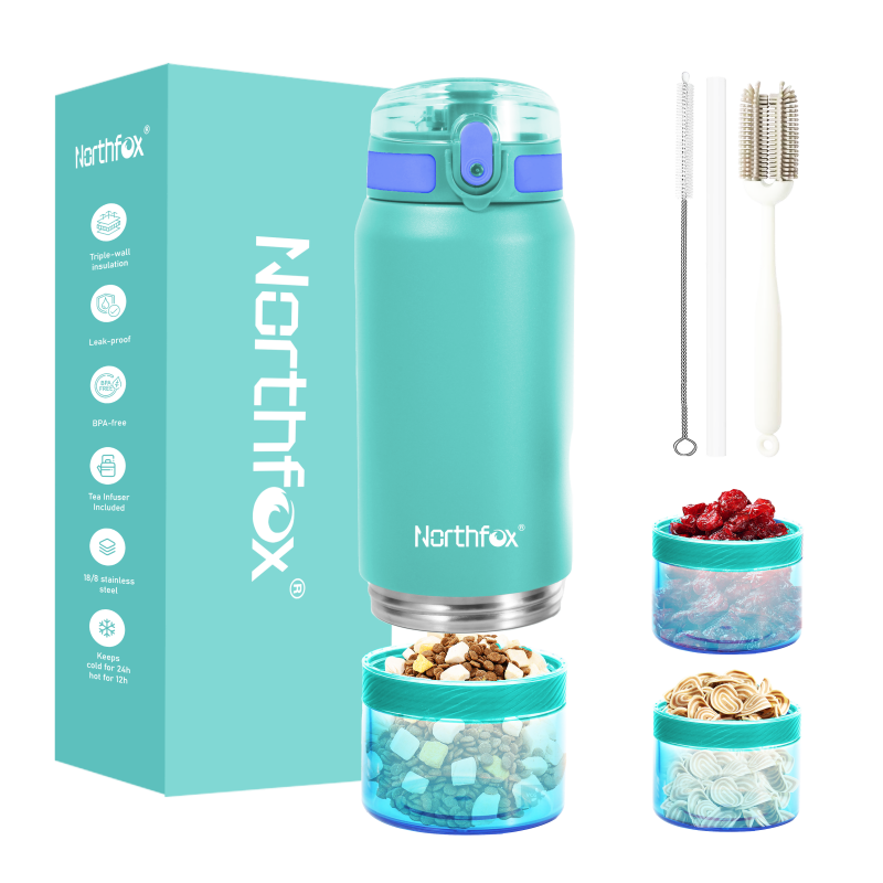 Bouteilles d'eau isothermes personnalisées en acier inoxydable de 500 ml, anti-fuite, pour enfants, avec compartiments inférieurs pour collations