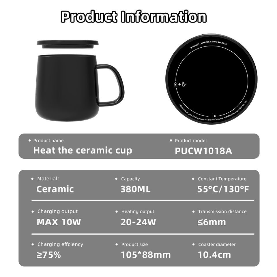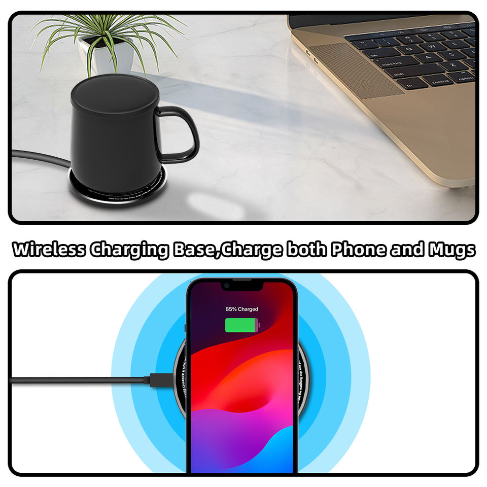 Mug chauffant intelligent en céramique artisanal à 55 degrés personnalisé avec chargeur sans fil à charge rapide pour téléphone portable en métal