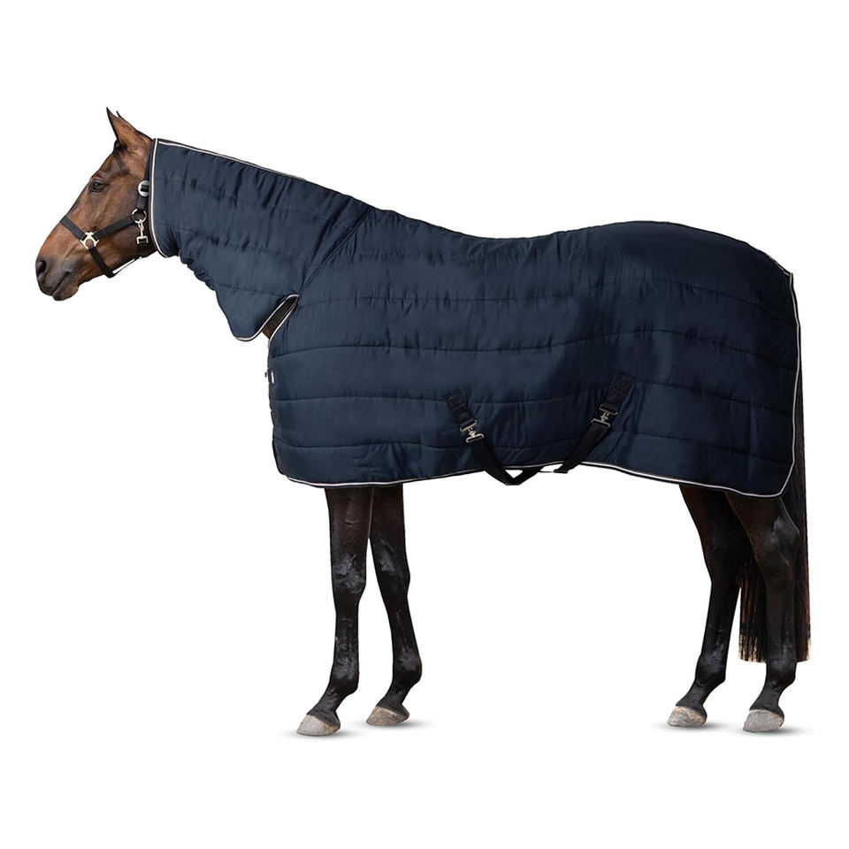 Couverture de cheval d'intérieur personnalisée en tissu 600D de poids moyen | Linge de lit imperméable combiné avec protège-cou | Tapis stable de 72 pouces