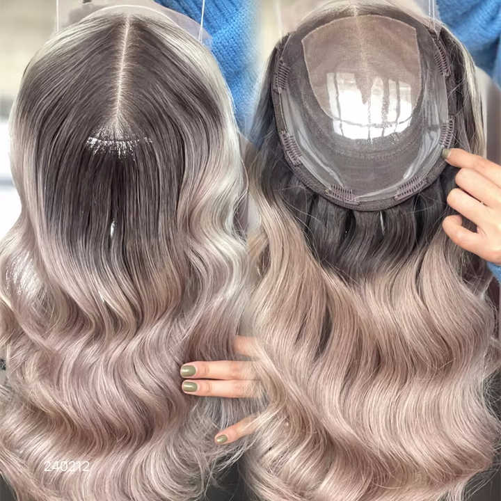 Personnalisé 8*8 Lace Front Européen Cheveux Humains Topper Partie Libre 4*4 Base de Soie Pre Pluck Délié 16 Pouces