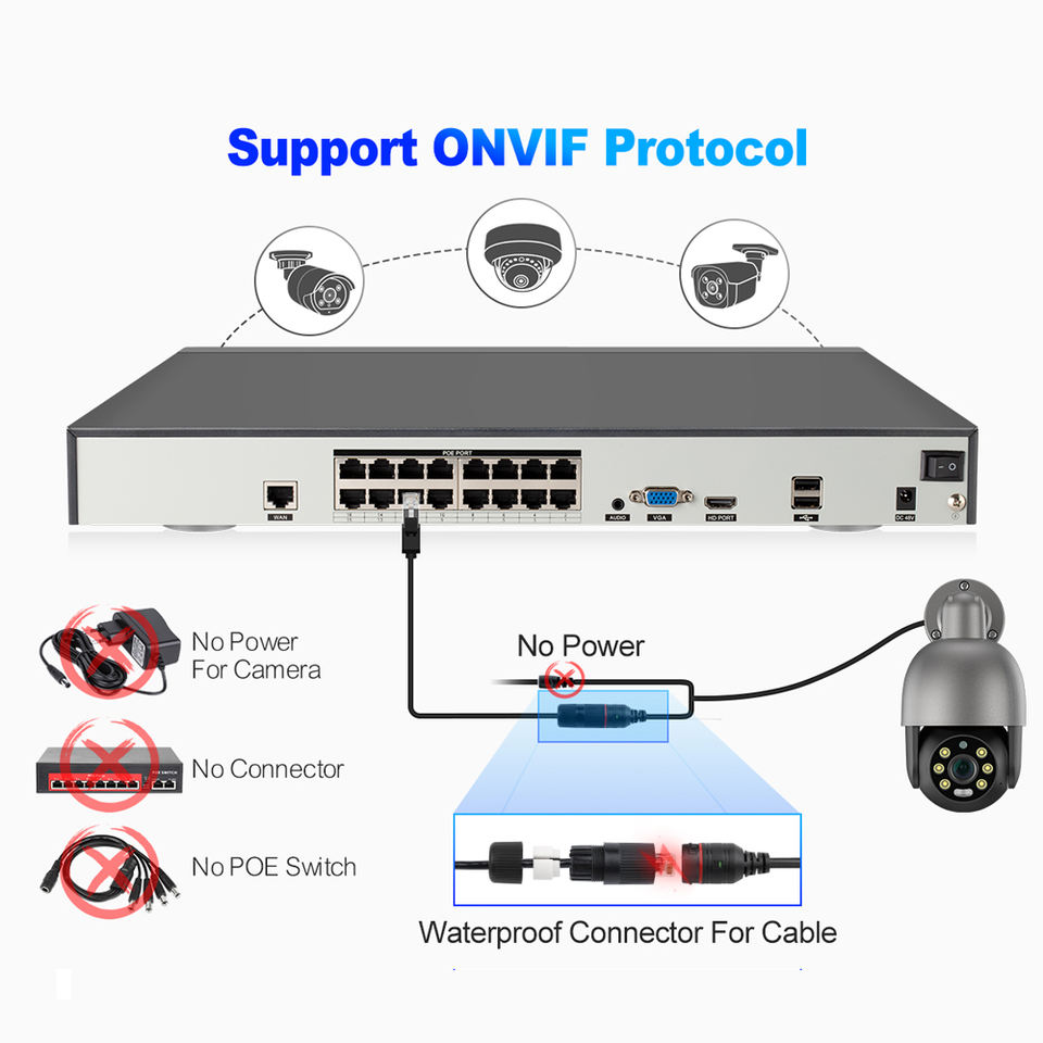 Personnalisé 8mp 16ch suivi automatique humain Poe Ptz caméra Kit IP66 étanche bidirectionnel Audio sécurité à domicile système de caméra de vidéosurveillance
