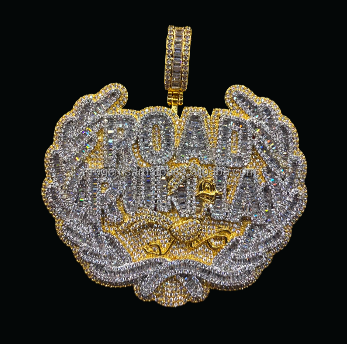 Personnalisé 925 Argent HipHop Rock Rappeur Bijoux Pendentif Petit Animal Baguette Lettre Nom avec Moissanite pour Hommes