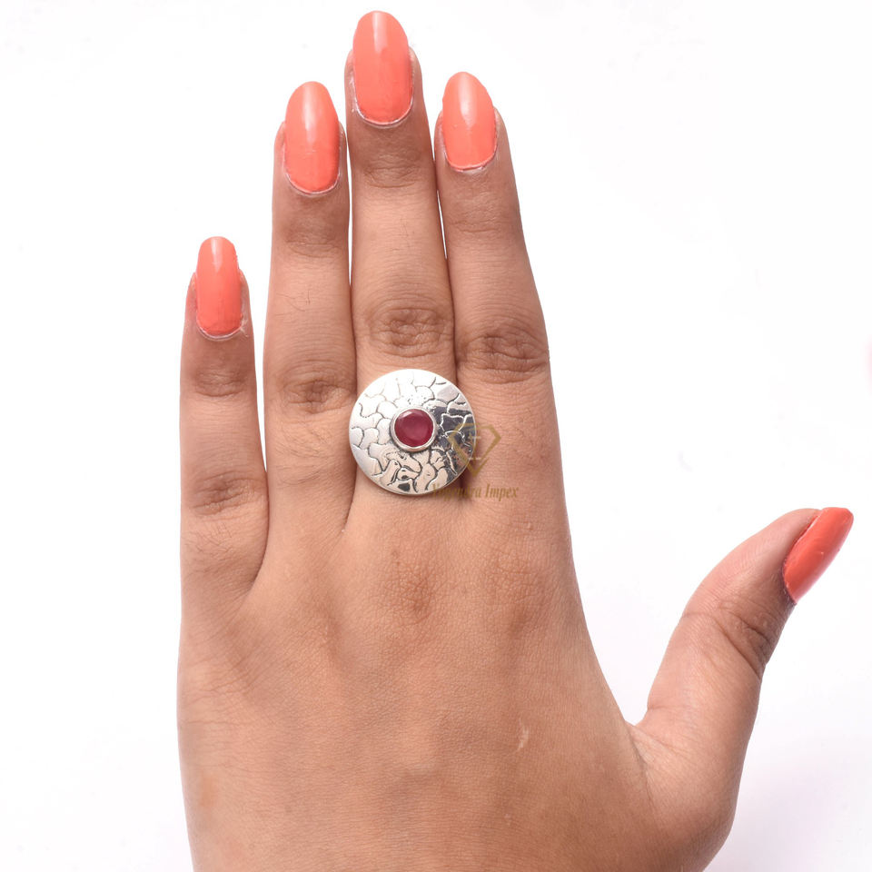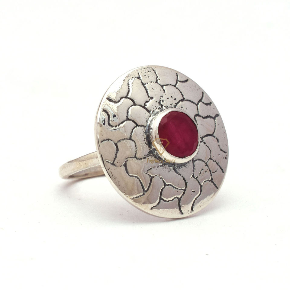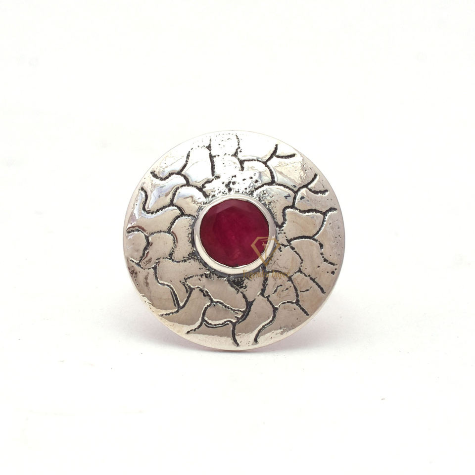 Bague en argent sterling massif 925 personnalisée avec pierre précieuse rubis unique goutte d'eau naturelle lunette ronde pour mariages