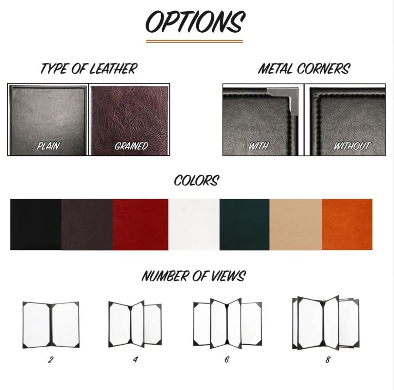 Menu de restaurant A4 personnalisé couvre dossier Logo en relief affichage Menu livre en cuir 2/4/6/8 vue Menu titulaire pour cafés Bar hôtel