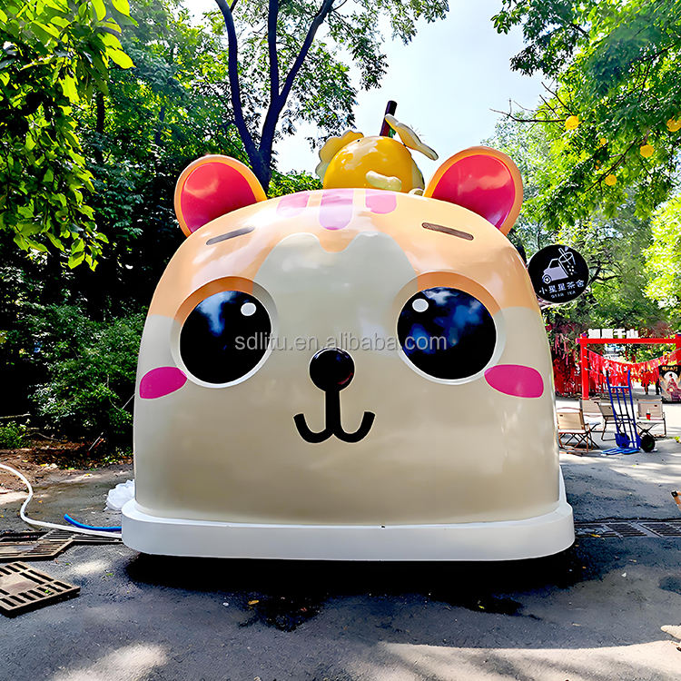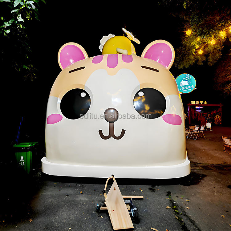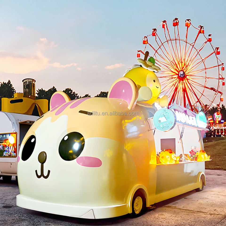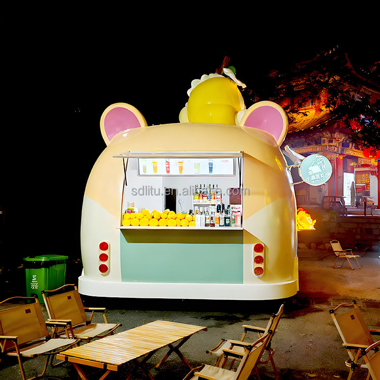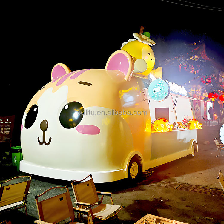 L'IA personnalisée restaure la tête de chat Cartoon Food Truck Remorque de restauration alimentaire mobile Chariots à café d'extérieur entièrement équipés à vendre