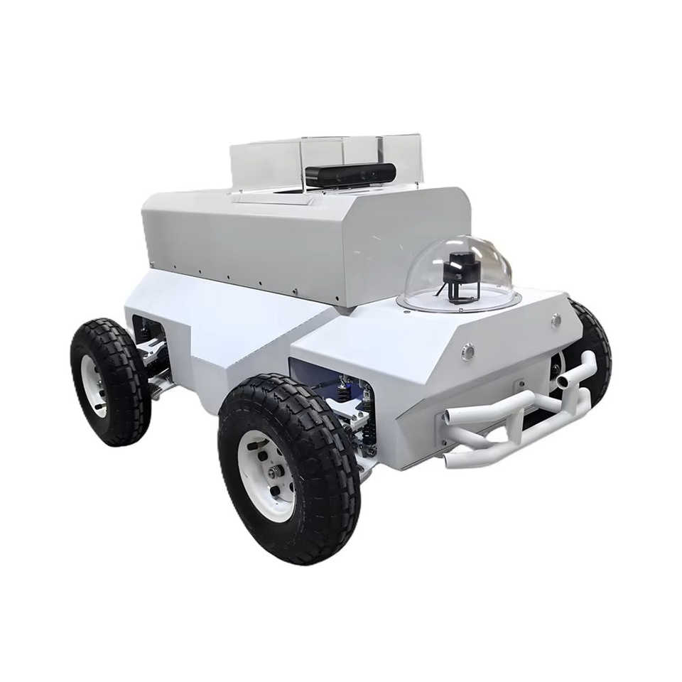 Châssis de robot industriel personnalisé de type Ackermann à direction avant, contrôlé par câble, avec inspection complète du châssis