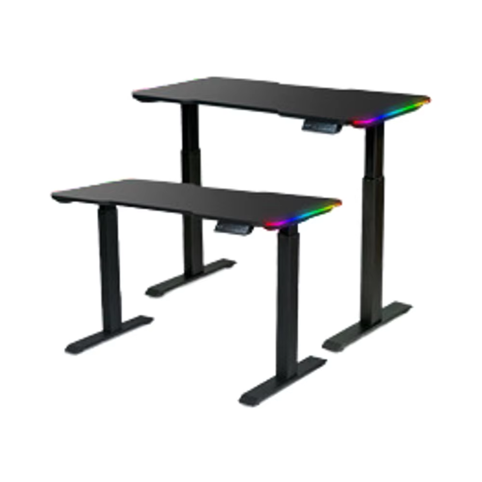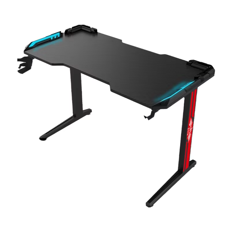 Bureau de jeu en métal avec éclairage LED RVB réglable personnalisé, surface en fibre de carbone pour chambre à coucher, PC gamer, ergonomique pour le jeu debout