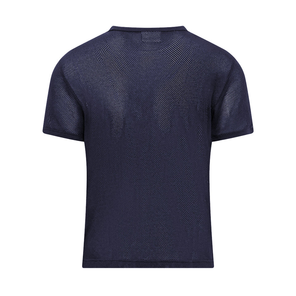 T-shirt en mesh personnalisé pour homme, couleur bleue, manches courtes, épaules tombantes, pour sport, gym, entraînement, musculation, avec option OEM