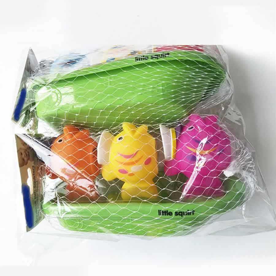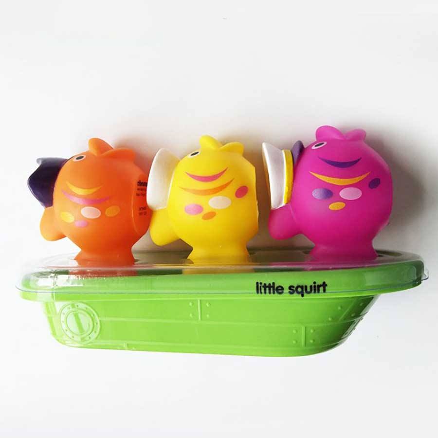 Ensemble de jouets de bain en caoutchouc publicitaire personnalisé, navire pirate en vinyle et petits poissons qui font des jets d'eau