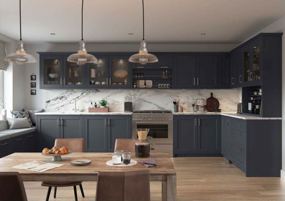Armoire de cuisine en bois de style shaker américain personnalisée avec îlot pour la décoration de la maison - Fabriquée à partir de matériaux de panneaux durables