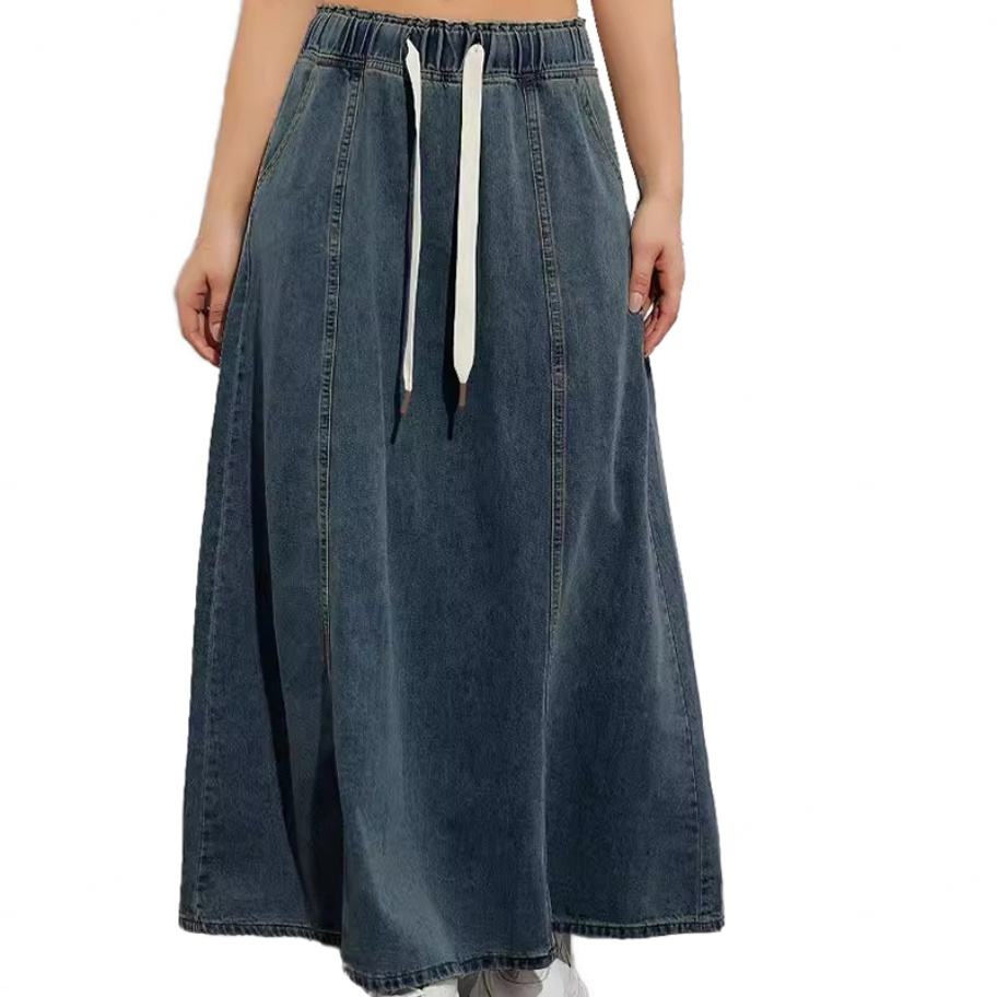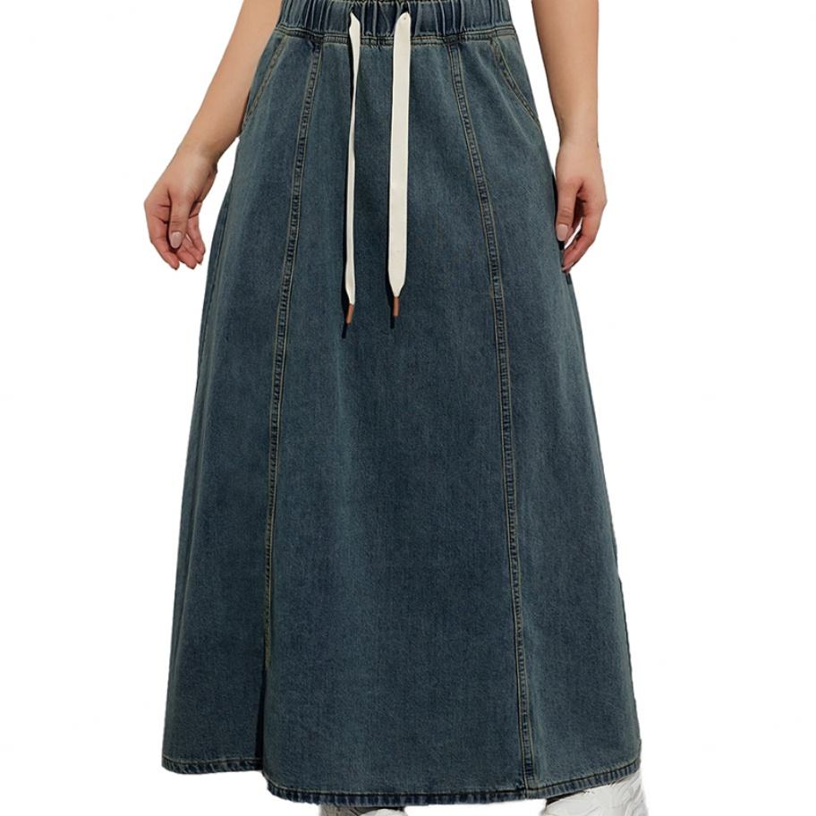 Jupe longue décontractée en jean pour femme, taille élastique, coupe ample, ourlet large, style streetwear américain personnalisé