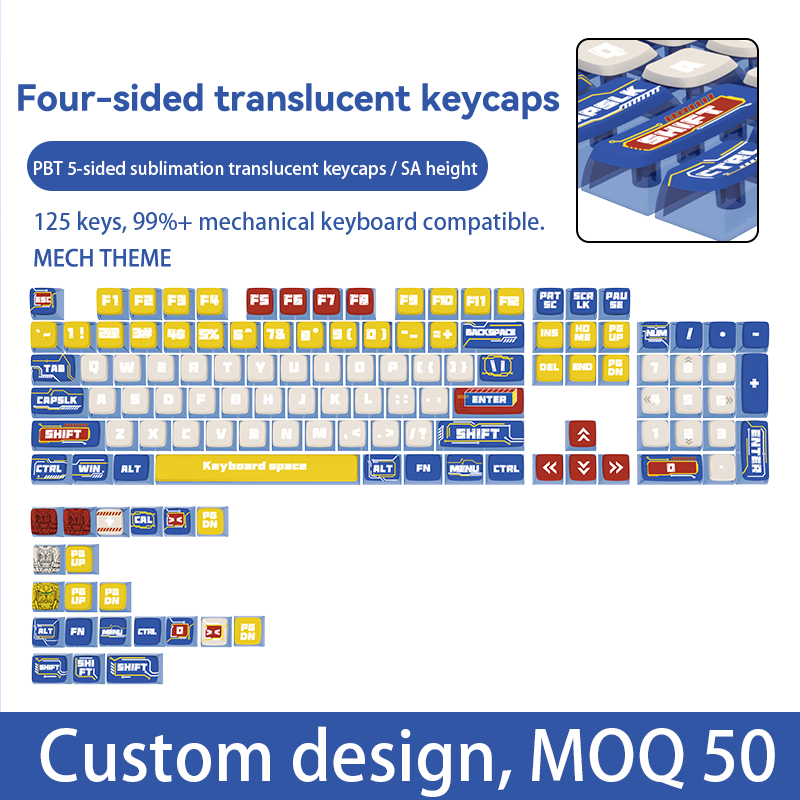 Keycaps PBT Anime Personnalisés pour Claviers de Jeu Mécaniques Modèle JM-1003 MOQ 2 Pièces Sublimation par Teinture Inaltérable Résistant à l'Huile