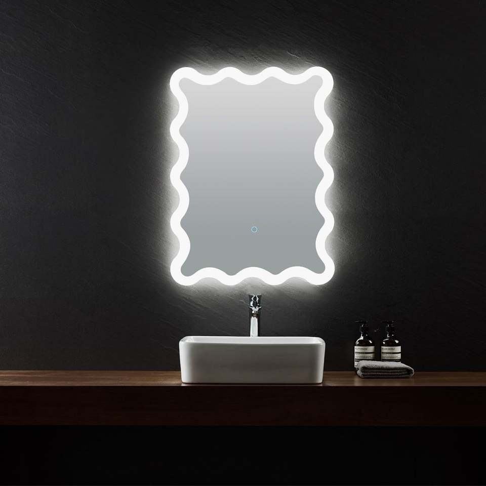 Miroir de maquillage LED mural sans cadre éclairé anti-buée personnalisé, miroir de coiffeuse intelligent, design moderne pour