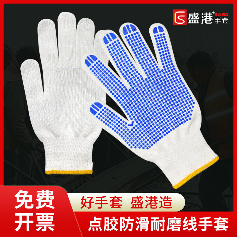 Gants en coton antidérapants personnalisés avec paume à pois bleus pour travaux de construction et manutention de briques, épaissis et résistants à l'usure