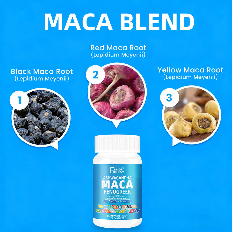 Complément personnalisé Ashwagandha Maca Racine de fenugrec avec Tongkat Ali Ginseng Améliorer l'énergie Capsules de racine de Maca