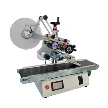 Machine d'étiquetage automatique personnalisée pour bouteilles rondes avec emballages de cartons de table en bois