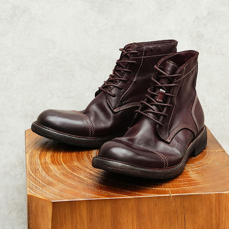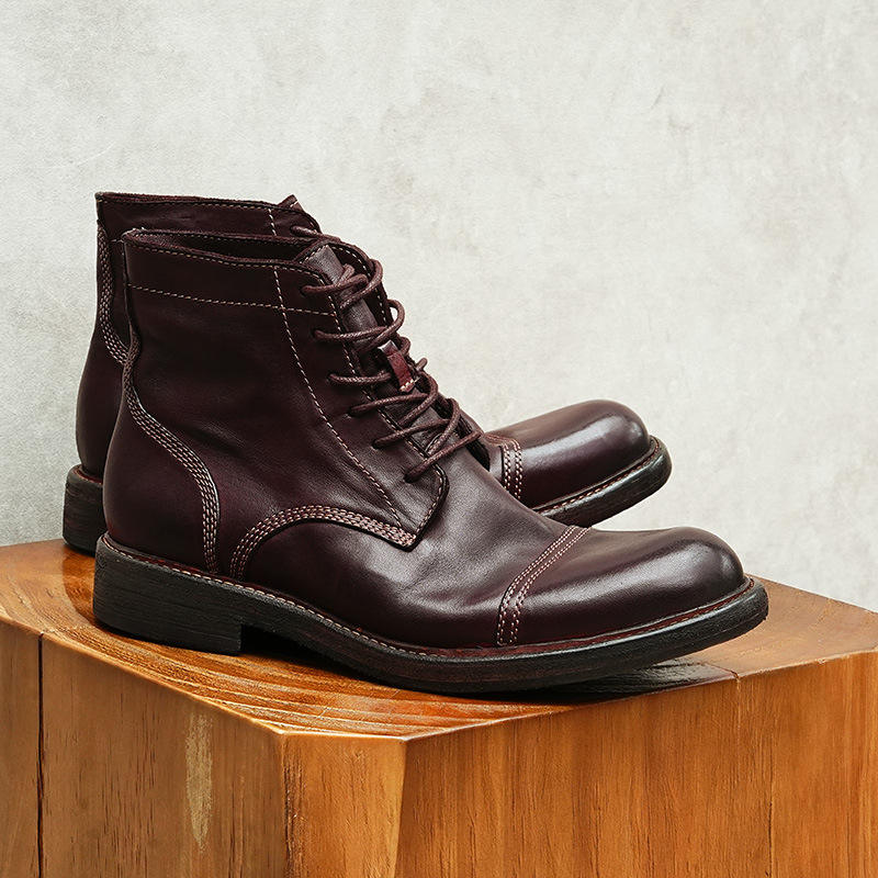Chaussures personnalisées à lacets en cuir véritable poli brillant, motif embossé, talon carré léger et semelle épaisse, idéales pour l'automne