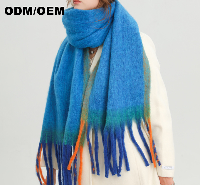 Écharpes en gaze à franges dégradées multicolores personnalisées pour l'automne et l'hiver par le fabricant