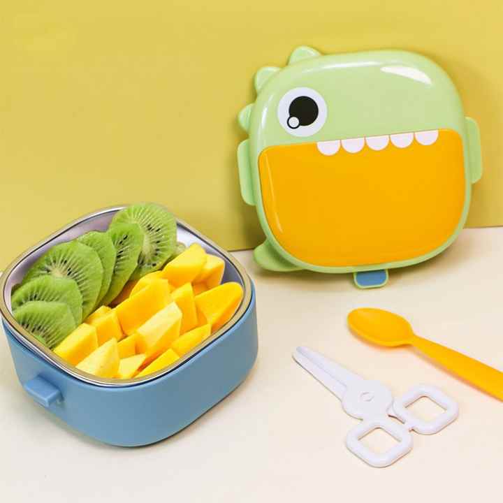 Boîte à lunch portable en plastique PP sans BPA personnalisée, ensemble de bols de rangement pour bébé en acier inoxydable avec cuillère et ciseaux pour enfants
