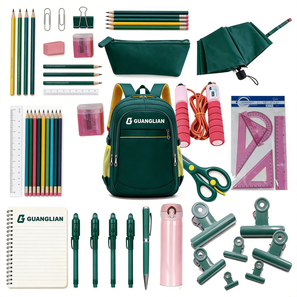 Ensemble de papeterie personnalisé pour la rentrée scolaire, ensemble de papeterie coloré et amusant pour la salle de classe, ensemble de papeterie sûr et fiable, fabriqué en usine