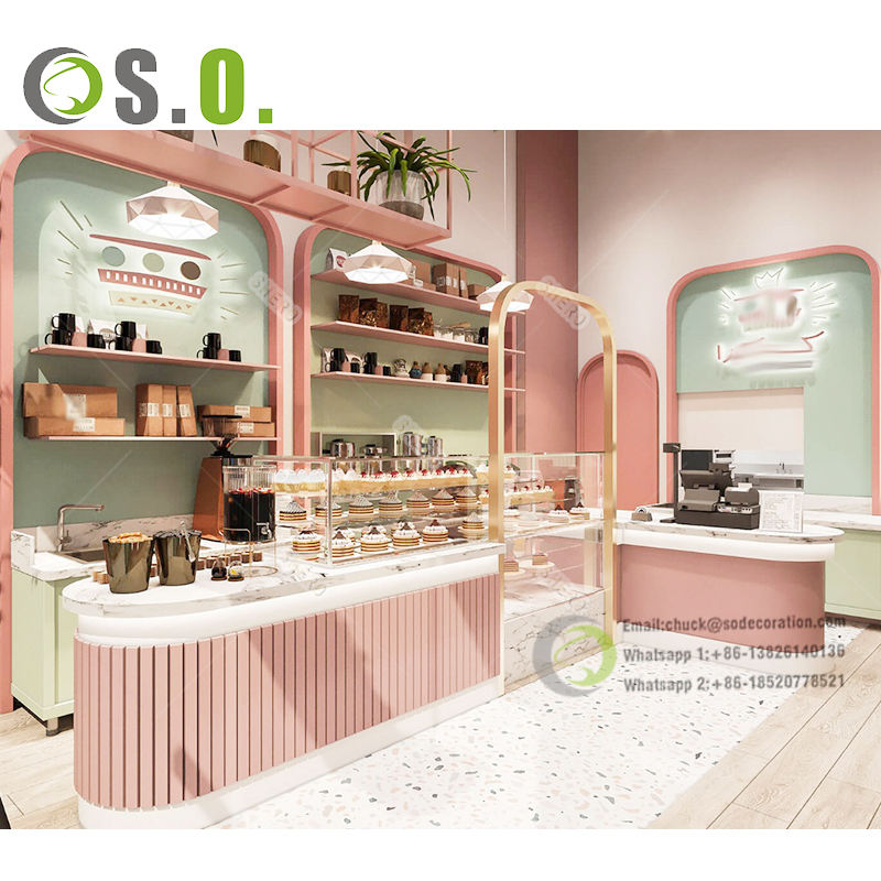 Vitrines d'affichage en verre de boulangerie personnalisées Boulangerie avec design d'intérieur