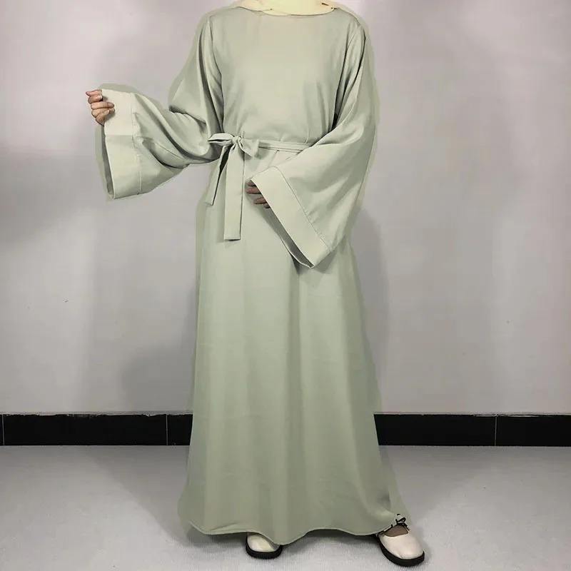 Abaya américaine basique personnalisée avec ceinture offerte, robe modeste simple de haute qualité pour femmes musulmanes, vêtements islamiques pour l'Aïd et le Ramadan