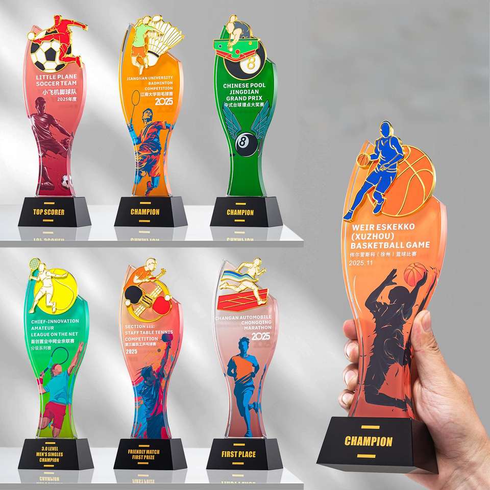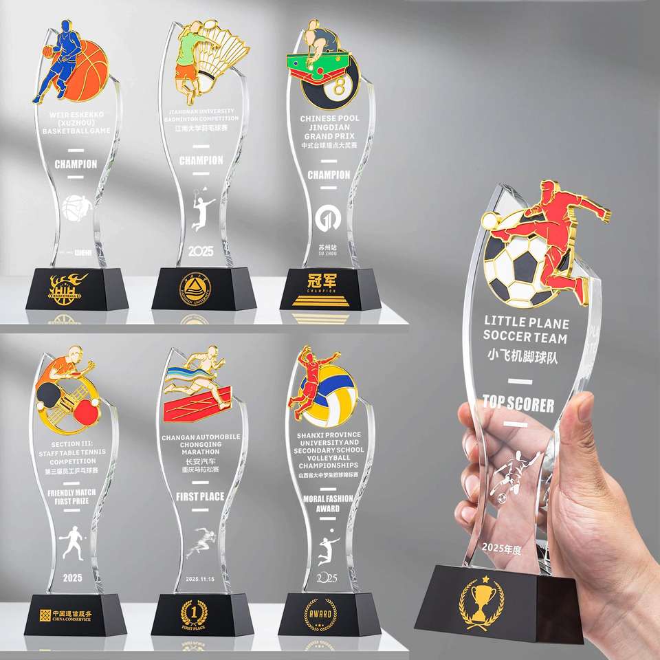 Trophée en Cristal Personnalisé Championnat de Basketball Football, Couleurs et Motifs Personnalisables, Récompenses Coupe Trophée en Cristal