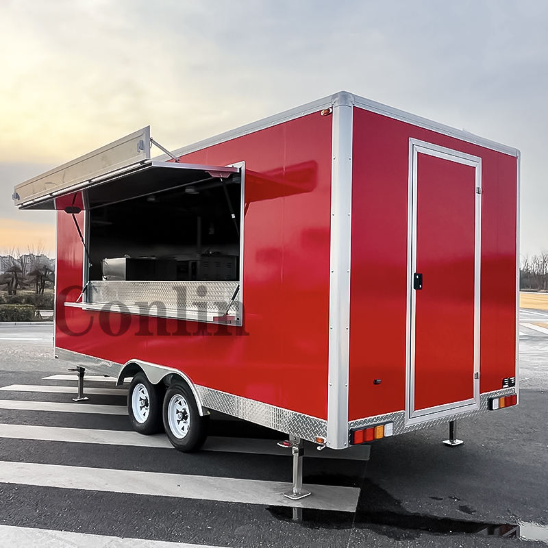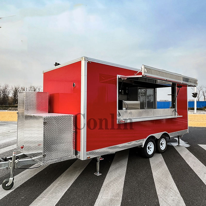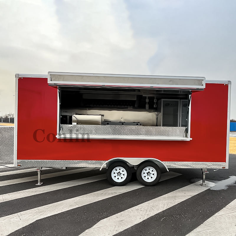 Remorque personnalisée pour aliments cuits au barbecue Chariot à hot-dogs avec grill et friteuse Camion à pizza et à glace