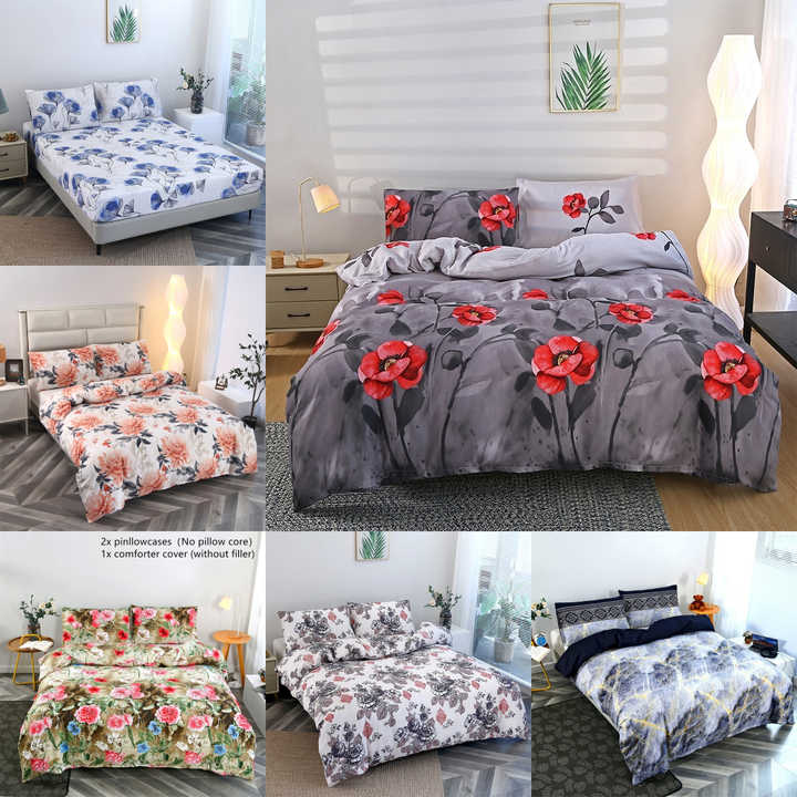 Drap de lit personnalisé housse de couette couvre-lit ajusté ensemble de literie ensemble de housse de couette en microfibre de fleurs botaniques