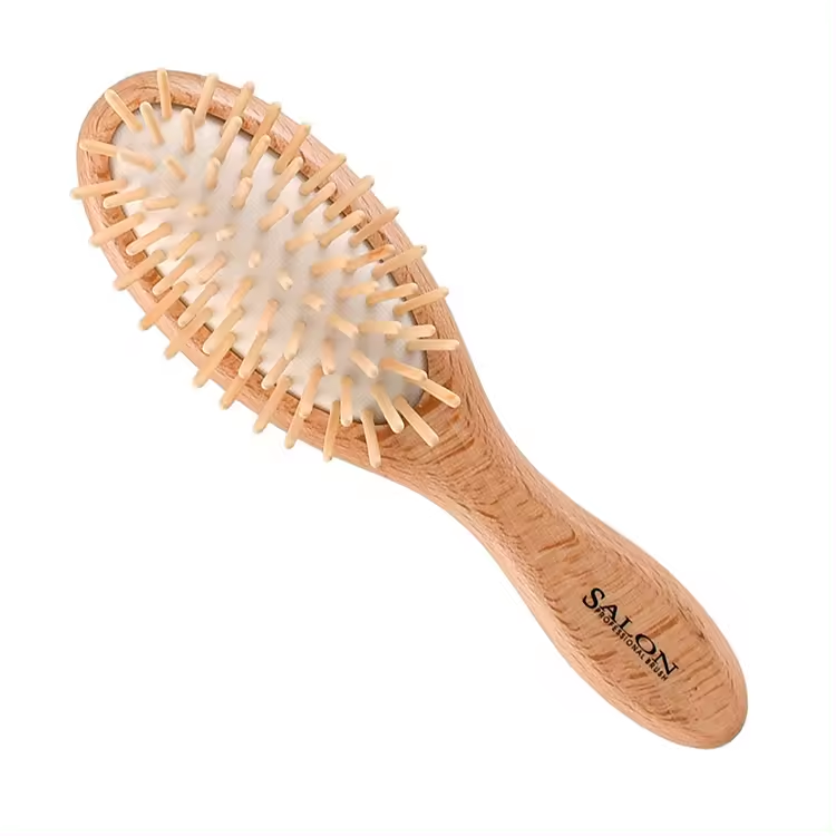 Brosse à coussin en bois de hêtre personnalisée Peigne à cheveux en bois naturel et nylon Type électrique