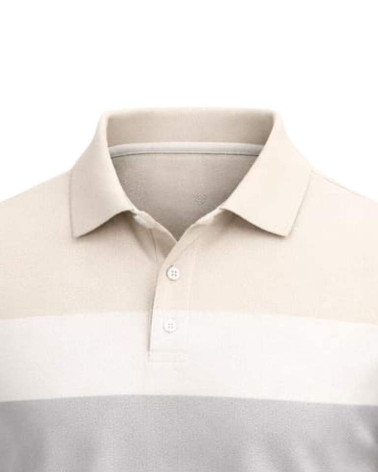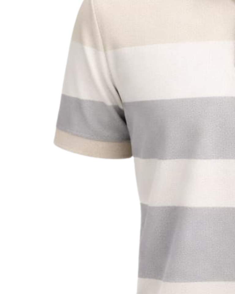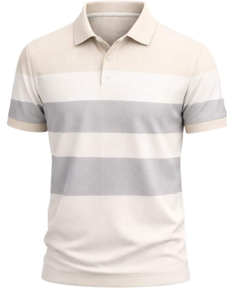 Polo en coton rayé beige et gris personnalisé pour homme, coupe classique, manches courtes, tenue décontractée d'été, fabricant OEM, approvisionnement en gros