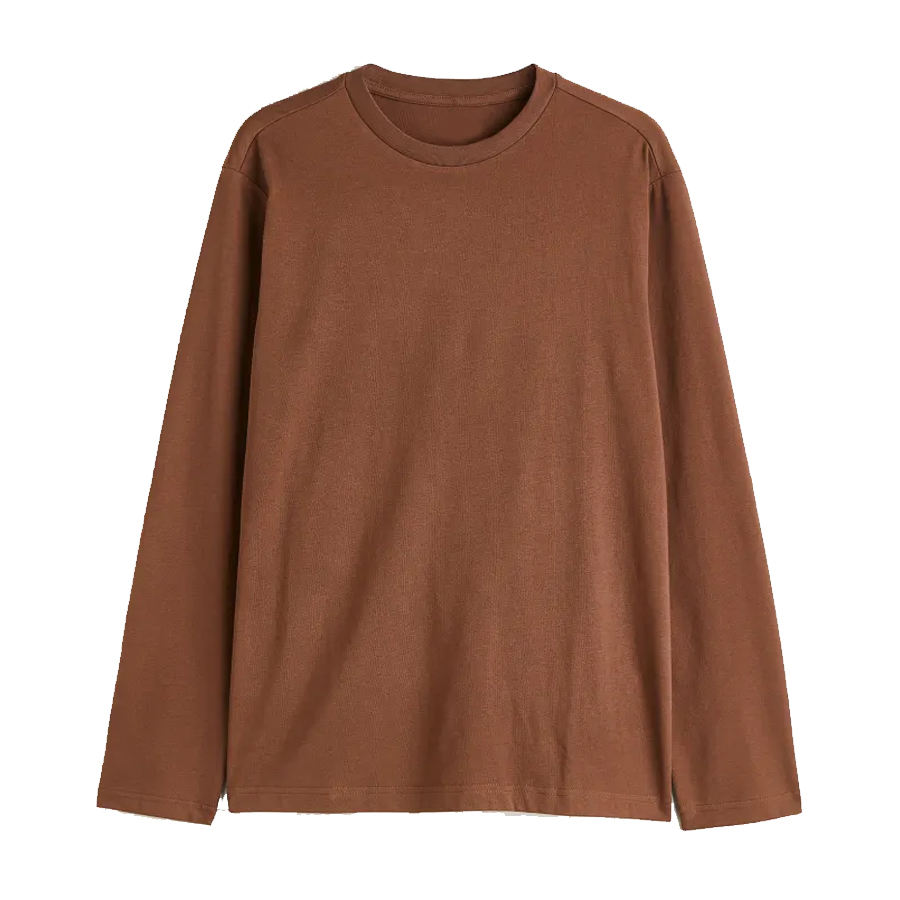 Meilleures ventes personnalisées T-shirt manches complètes de base pour hommes de couleur marron 230 GSM avec logo et design personnalisés à vendre
