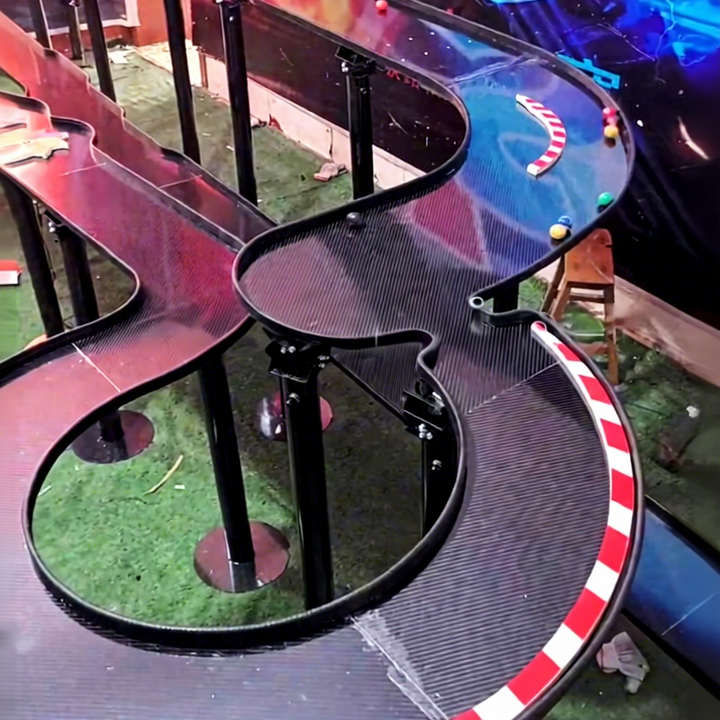 Piste de jeu de balle mécanique personnalisée de grande taille, marque HUAXI, en métal, écologique, pour usage intérieur, jeu de balle rapide et furieux, labyrinthe, rallye, combat