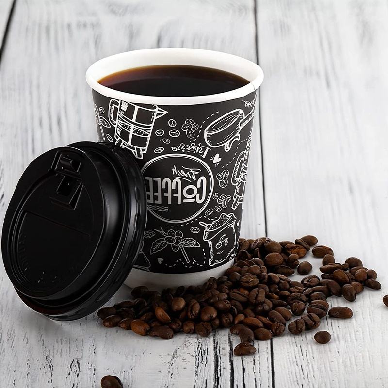 Gobelets à café en papier biodégradables personnalisés à double paroi avec couvercles et manchons