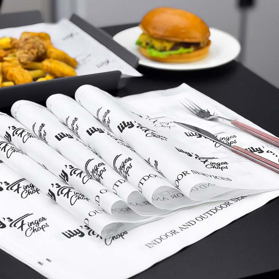 Papier d'emballage pour hamburger, sandwich, restauration rapide, personnalisé, biodégradable, écologique, recyclable, résistant à la graisse, imperméable, jetable