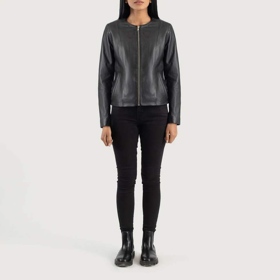 Veste en cuir noir personnalisée sans col Fabrication professionnelle de haute qualité avec logo du service OEM Position avant
