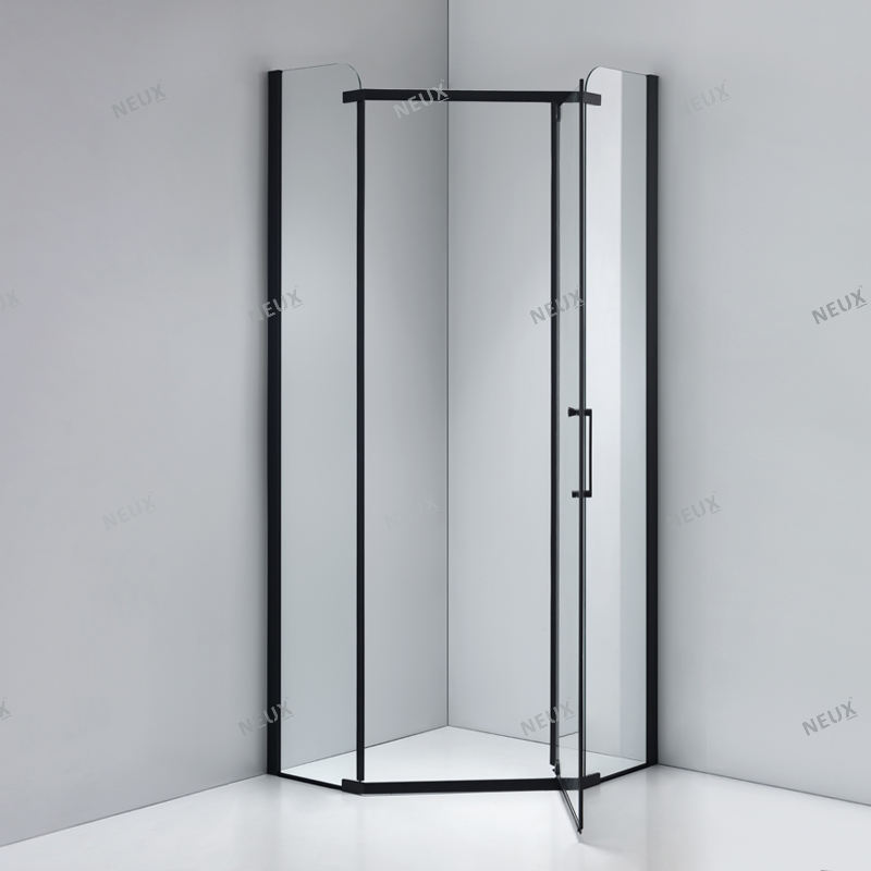 Nom du produit:Cabine de douche en verre avec charnière pivotante noire en forme de diamant