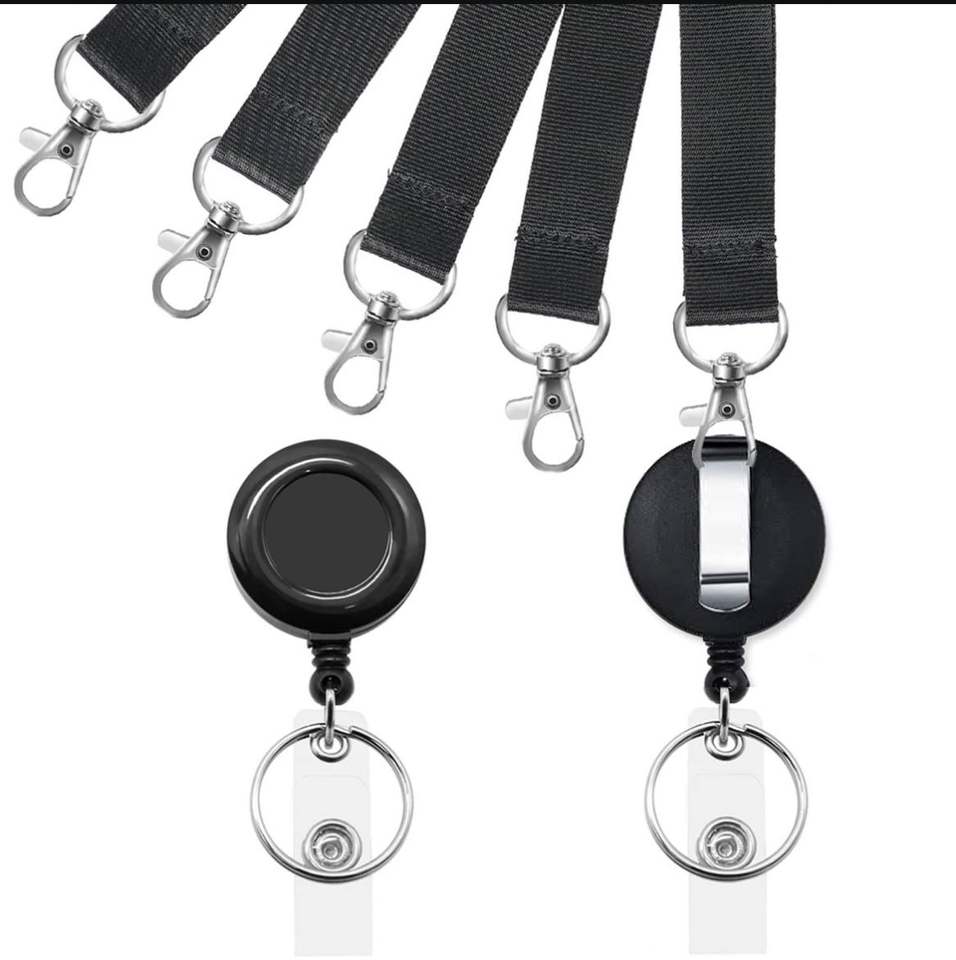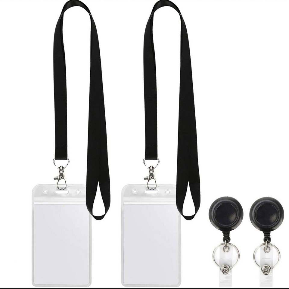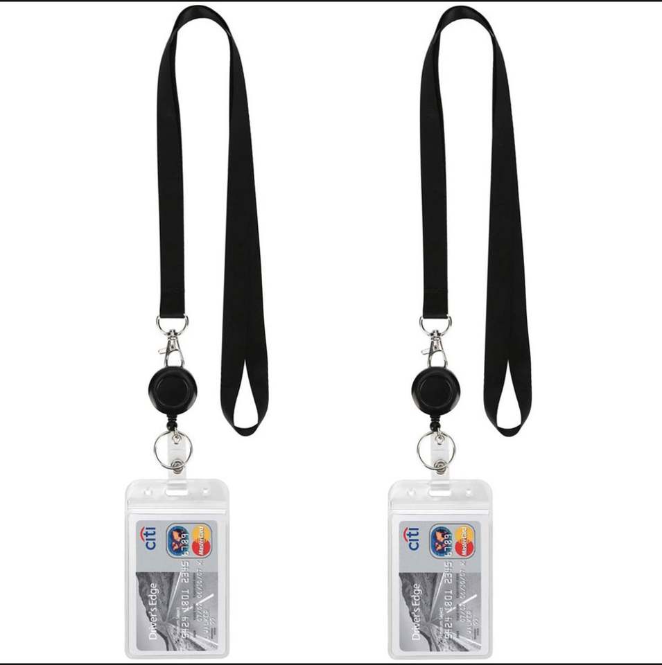 Porte-badge personnalisé noir avec cordon rétractable et boucle facile à tirer, lanière de cou avec support de carte