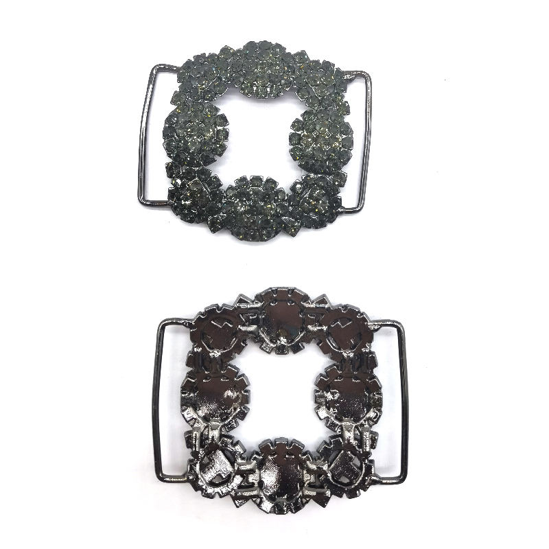 Boucle de ceinture en métal strass noir personnalisé Connecteurs de bikini strass en métal résistant à la rouille