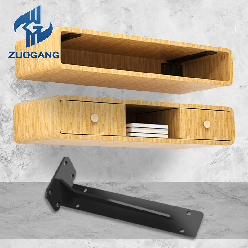 Supports triangulaires noirs personnalisés, robustes, en bois, pour montage mural, en tôle pliée, anti-rouille