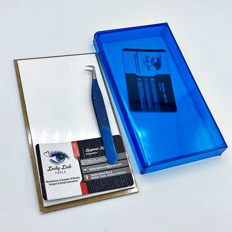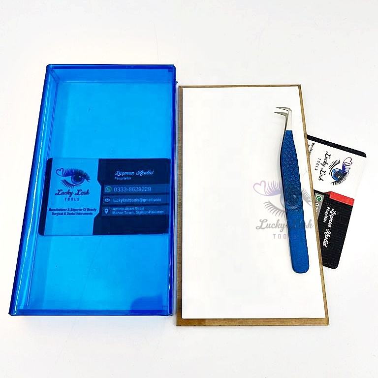 Couverture de tuile de cils en acrylique de couleur bleue personnalisée palette d'extensions de plateau de cils avec étiquette support de pince à cils durable tuile