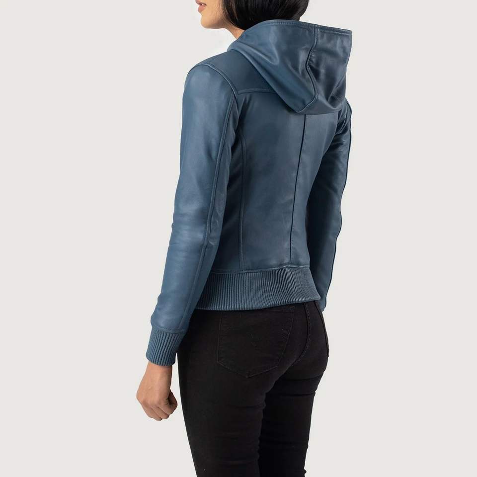 Blouson aviateur en cuir à capuche bleu personnalisé de haute qualité Fabrication professionnelle avec logo du service OEM Position avant