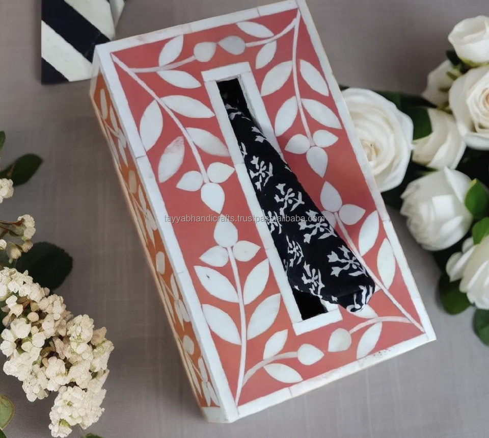 Boîte d'incrustation d'os personnalisée et porte-mouchoir de vadrouille et couleur avec produit fait main avec décoration de table et accessoires Boîtes à mouchoirs
